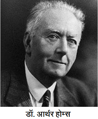 डॉ. आर्थर होम्स (१८९०-१९६५) हे विसाव्या शतकातले एक महान भूवैज्ञानिक होते. त्यांनी भौतिकविज्ञानातल्या संकल्पनांचा उपयोग भूविज्ञातले प्रश्न यशस्वीरीत्या हाताळण्यासाठी केला. किरणोत्सर्गीय कालमापनाची पद्धत विकसित करण्यात त्यांचा सिंहाचा वाटा तर आहेच, पण पृथ्वीच्या अंतरंगातल्या आवरणांपैकी कवचाखाली असणाऱ्या प्रावरणात उष्णतेचे अभिसरण (कन्वेक्शन) सतत सुरू असते या त्यांच्या सिद्धांतामुळे खंडांचे परिवहन (कॉन्टिनेन्टल ड्रिफ्ट) या सिद्धांताला बळकटी मिळाली.