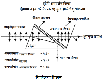 सामान्य किरण जेव्हा कॅनडा बॉल्समच्या स्तराला जाऊन टेकतो, तेव्हा त्याचा पतनकोन असा राहतो, की त्याचे पूर्ण आंतरिक परावर्तन (टोटल इंटर्नल रिफ्लेक्शन) होते. म्हणजेच सामान्य किरण कॅनडा बॉल्सम पार करून लोलकाच्या समोरच्या बाजूने बाहेर पडू शकत नाही. पण असामान्य किरण मात्र कॅनडा बॉल्समचा थर पार करून लोलकाच्या समोरच्या बाजूने बाहेर पडतो, आणि तो ध्रुवीकृत असतो.