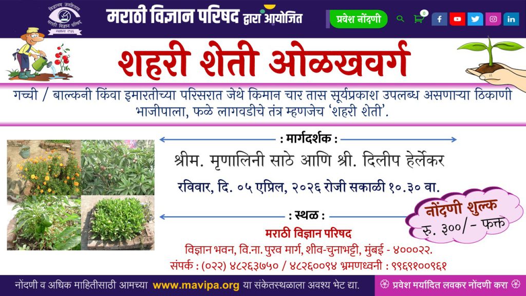 शहरी शेती – रविवार दिनांक ५ एप्रिल, २०२६ – वेळ सकाळी १०.३० वा.